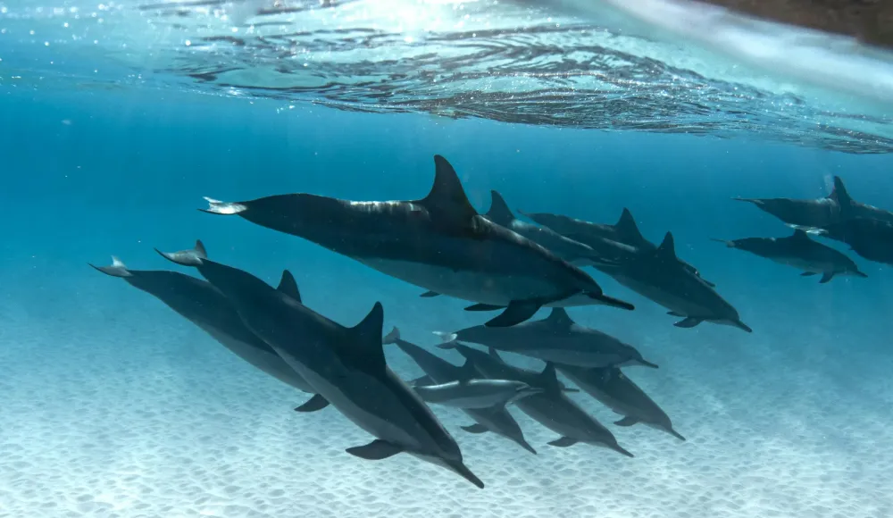 L’un des moments marquants est la découverte du lagon de Sataya, aussi appelé Dolphin House, connu pour la présence de dauphins à long bec. Ce lagon peu profond, protégé par une barrière récifale, offre des eaux calmes et translucides, idéales pour l’observation en surface. Les rencontres peuvent être fréquentes, tout en restant totalement imprévisibles, les dauphins évoluant en liberté.