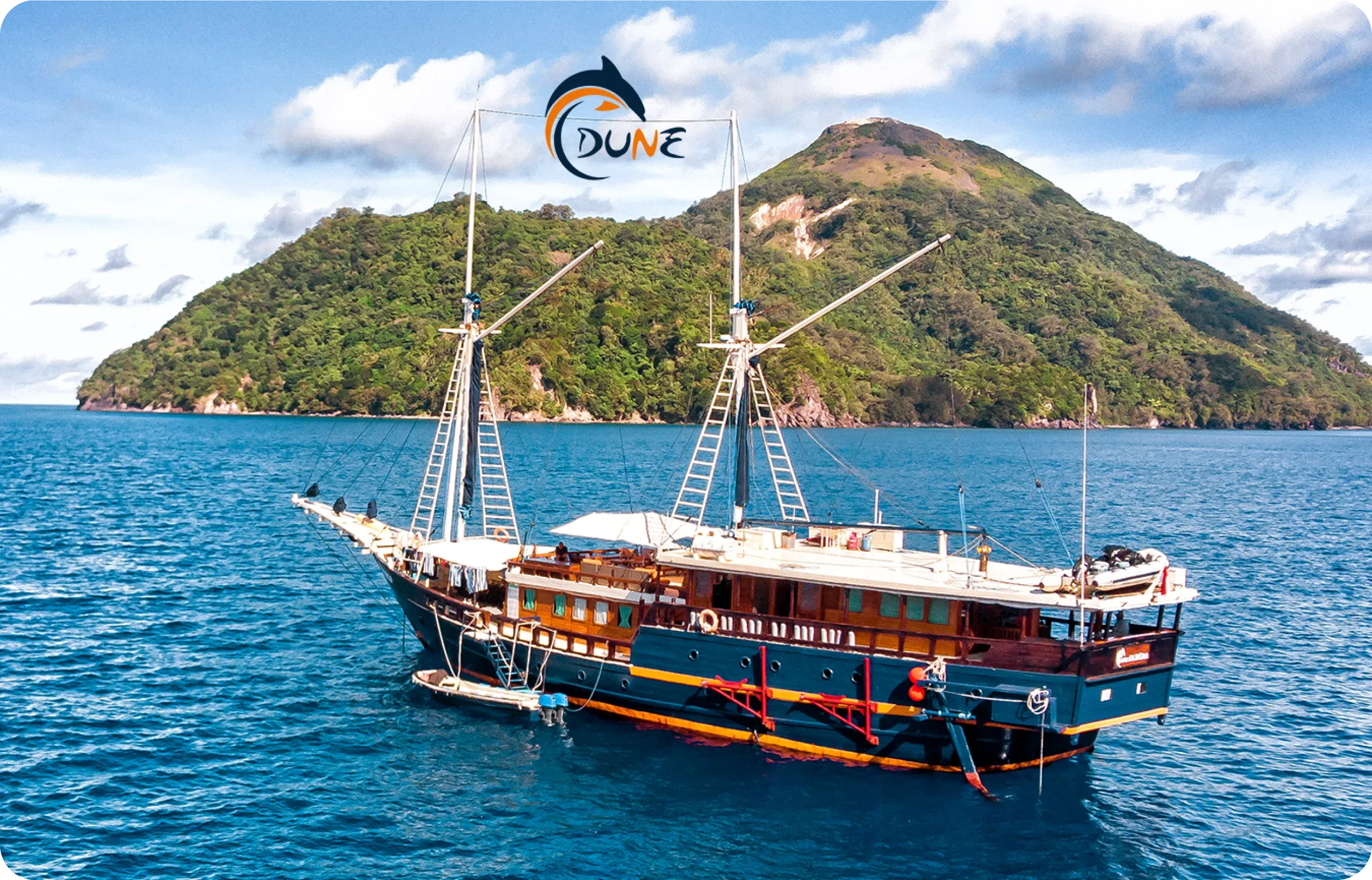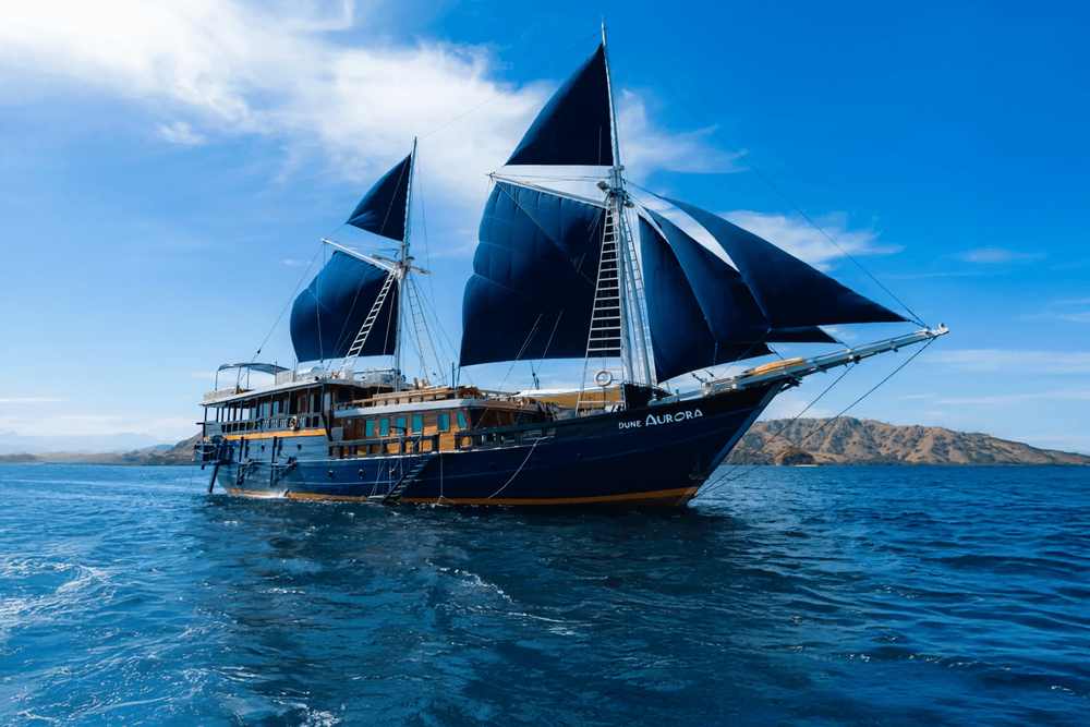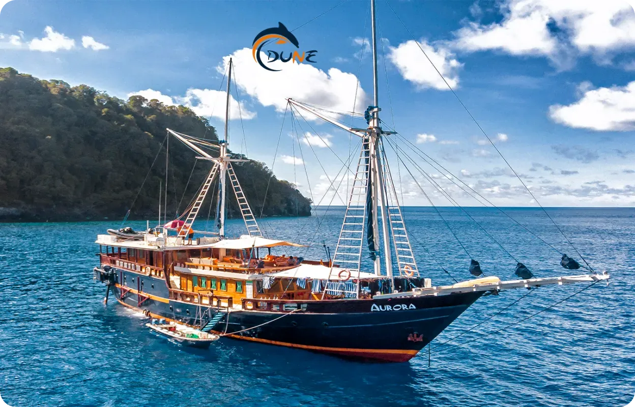 Le Phinisi Dune Aurora navigue toute l’année vers les plus beaux endroits de l’archipel indonésien, avec des eaux cristallines et des paysages époustouflants. Après une journée de plongées et d’expériences inoubliables, nos invités peuvent se détendre dans le salon climatisé ou sur le pont soleil. Les chefs à bord préparent des plats locaux et internationaux, avec des options végétariennes, véganes et sans gluten.