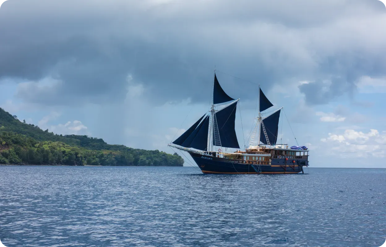 Naviguer sur l’Aurora, c’est aussi vivre l’expérience d’un véritable pinisi construit à Sulawesi et explorer un archipel parmi les plus fascinants au monde. De Raja Ampat à la mer de Banda, chaque itinéraire combine caractère, dépaysement et beauté naturelle.