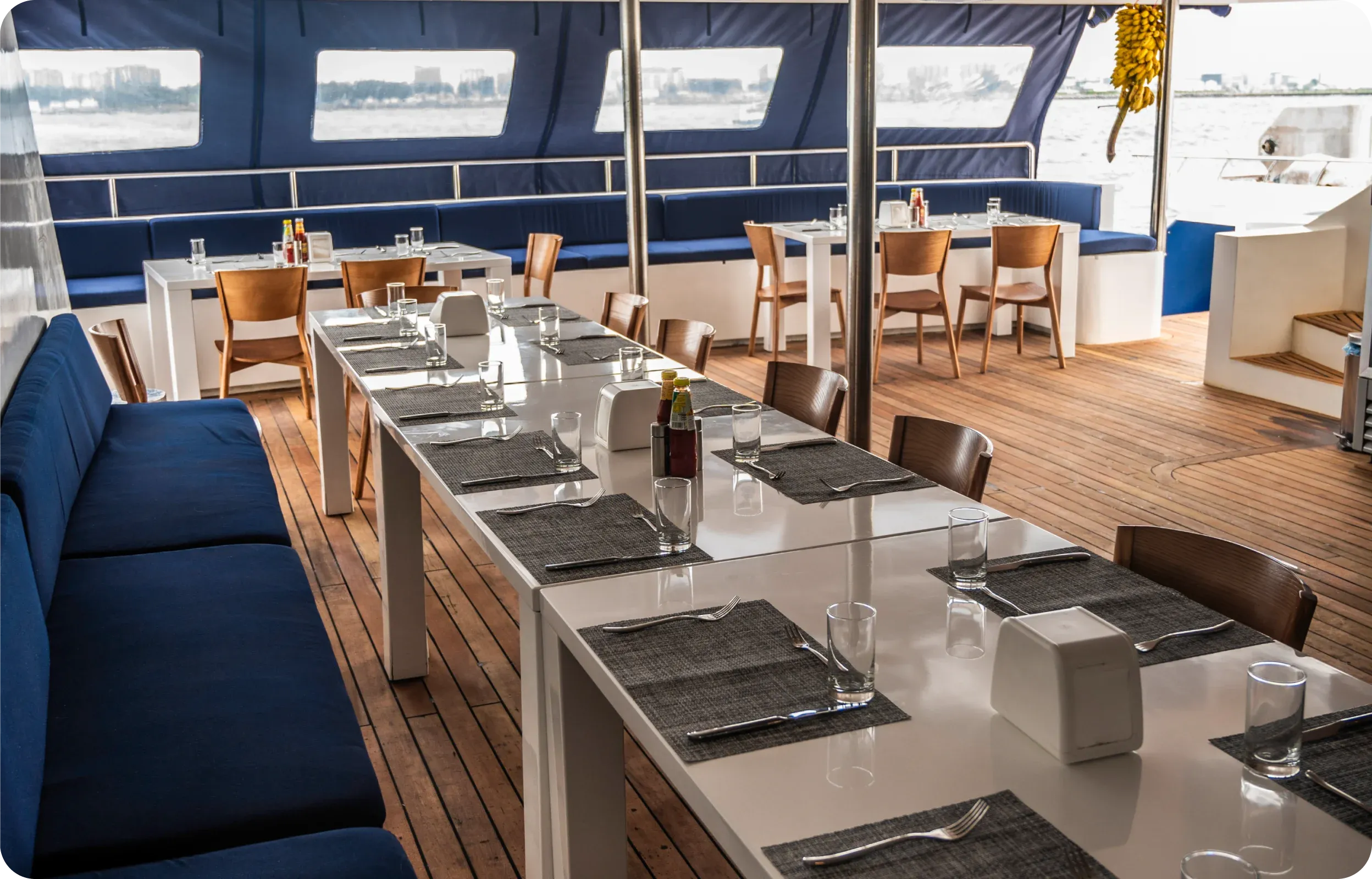 À bord, la cuisine mêle inspirations locales et internationales dans une formule généreuse et conviviale. Les repas sont servis dans un cadre ouvert sur la mer, avec des adaptations possibles selon les régimes alimentaires et les préférences des voyageurs.